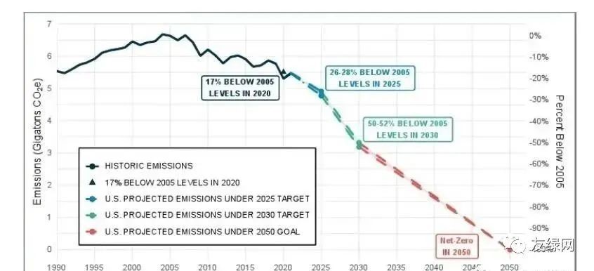 此外,美國還成(chéng)立了美國氣候聯盟,所(suǒ)有加(jiā)入該聯盟的各州(zhōu)都同意實施碳減排(pái)計劃並製定了明確的減排目標(biāo)。2021年COP26期間,美(měi)國宣(xuān)布2050年實現淨零排放目標(即碳中和),並將通(tōng)過在大部(bù)分經濟領域中(包括汽車、建築和工業)改用(yòng)清潔能源發電、提高能源效率(lǜ)並擴大使用(yòng)從大(dà)氣(qì)中提取二氧化碳的技術作為技術路線圖(tú)。