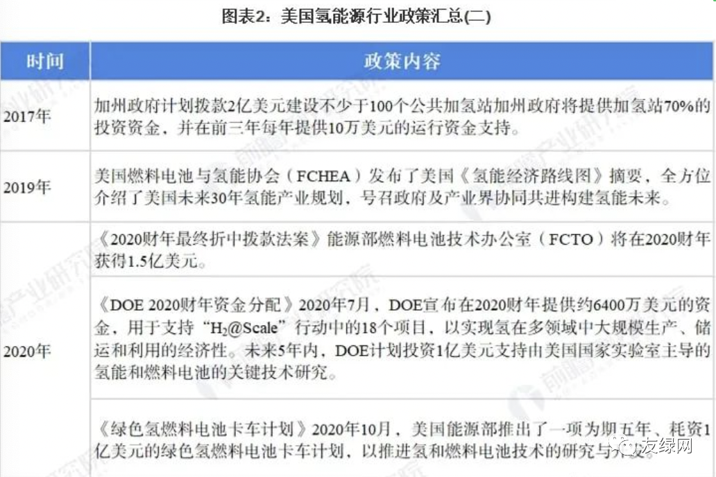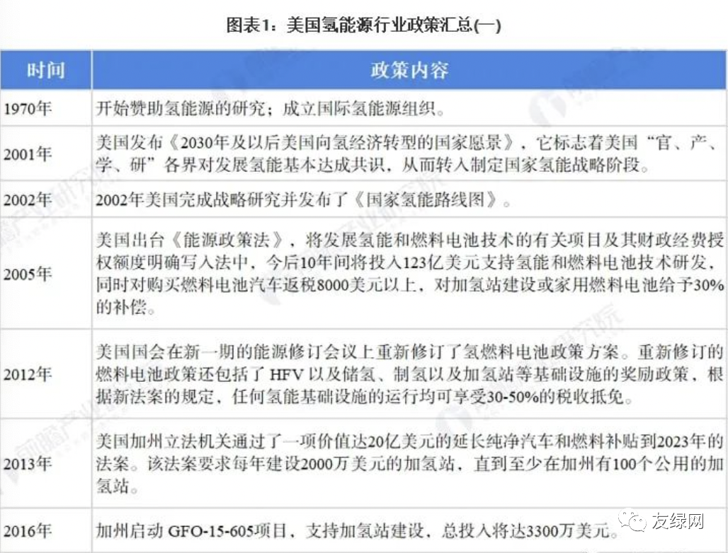 作為“車輪上的國家”,美國交(jiāo)通碳排放曾經一度居高不下,所以美國積極推廣新能源汽車,各州紛紛出台鼓勵使用生物燃料(liào)、獎勵“低碳燃料”的措施;2002年,美國發布了《國家氫能路(lù)線圖》對推動發展氫能和燃料(liào)電池(chí)技術給予了重要支撐。其中,加州是氫能產業的集中(zhōng)示範地(dì)區,目前擁有加氫站100座左右,目標2026年達到176座。根據《美國氫能經(jīng)濟路(lù)線圖》發布的規(guī)劃,到2030年,全美將推廣使用(yòng)氫燃料電池汽車530萬輛,預計在全美範(fàn)圍內建設5,600個加氫站。