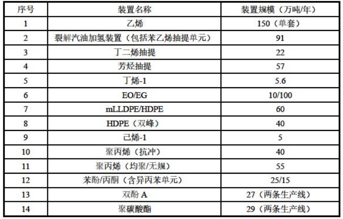 建設規模:乙烯及下(xià)遊——乙烯生產規模為150 萬噸/年,乙烯下遊規劃建設10/100 萬噸/年環氧乙烷/乙二醇、40 萬噸/年HDPE、60 萬噸/年mLLDPE/HDPE以及5 萬(wàn)噸(dūn)/年已烯-1。