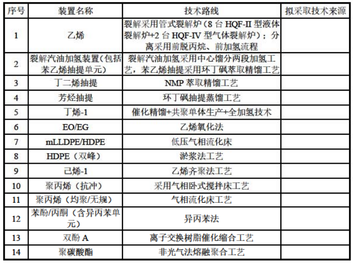 表(biǎo) 本次(cì)項目主體裝置主要技術路(lù)線(xiàn)