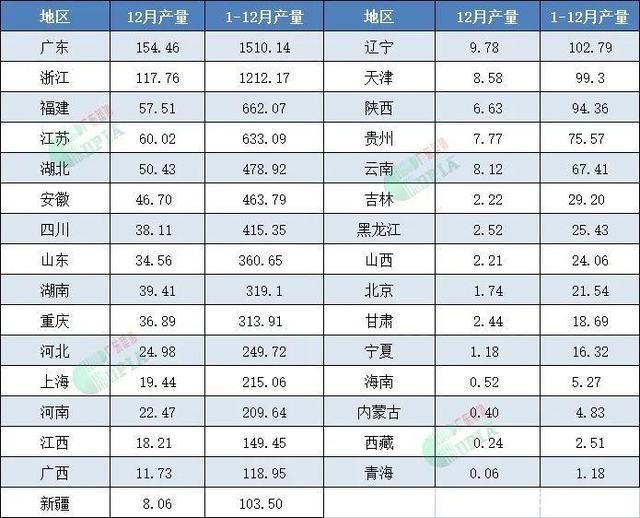 圖2 2021年1-12月中國塑料製品產量分(fèn)地區統計表(biǎo)(單位:萬噸)