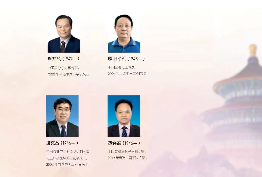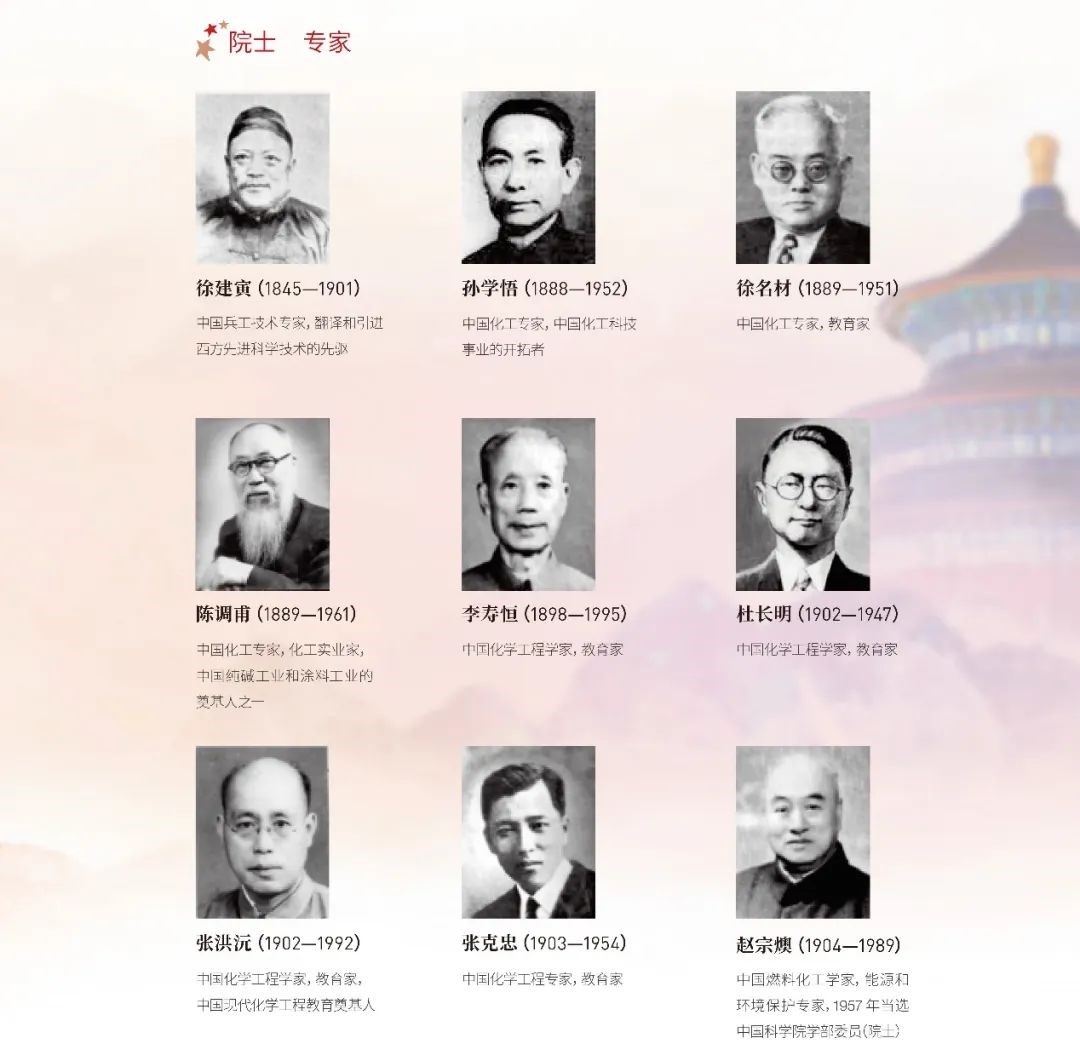 他們中,有化工先驅範旭東、侯(hóu)德(dé)榜、吳蘊初,有國家最(zuì)高科學技術獎獲得者閔恩澤、徐光憲、師昌緒、張存浩、屠呦呦,有時(shí)代楷模陳俊武,以及徐建寅、孫學悟等專家(jiā)、院士。