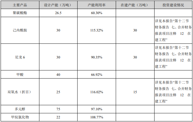 公(gōng)司主營業務包括化工新材料、基礎化(huà)工、化肥(féi)產品及其他業務,其中化工新材料產品主要(yào)包括聚(jù)碳 酸酯、尼龍6、己內酰胺(àn)、多元醇等;基(jī)礎化工產品主要包括甲烷氯化物和二甲基甲酰胺等(děng);化肥產品主 要包括複合肥等;其(qí)他業務(wù)主要包括化工裝備製造、化工行(háng)業相關設計研發等。