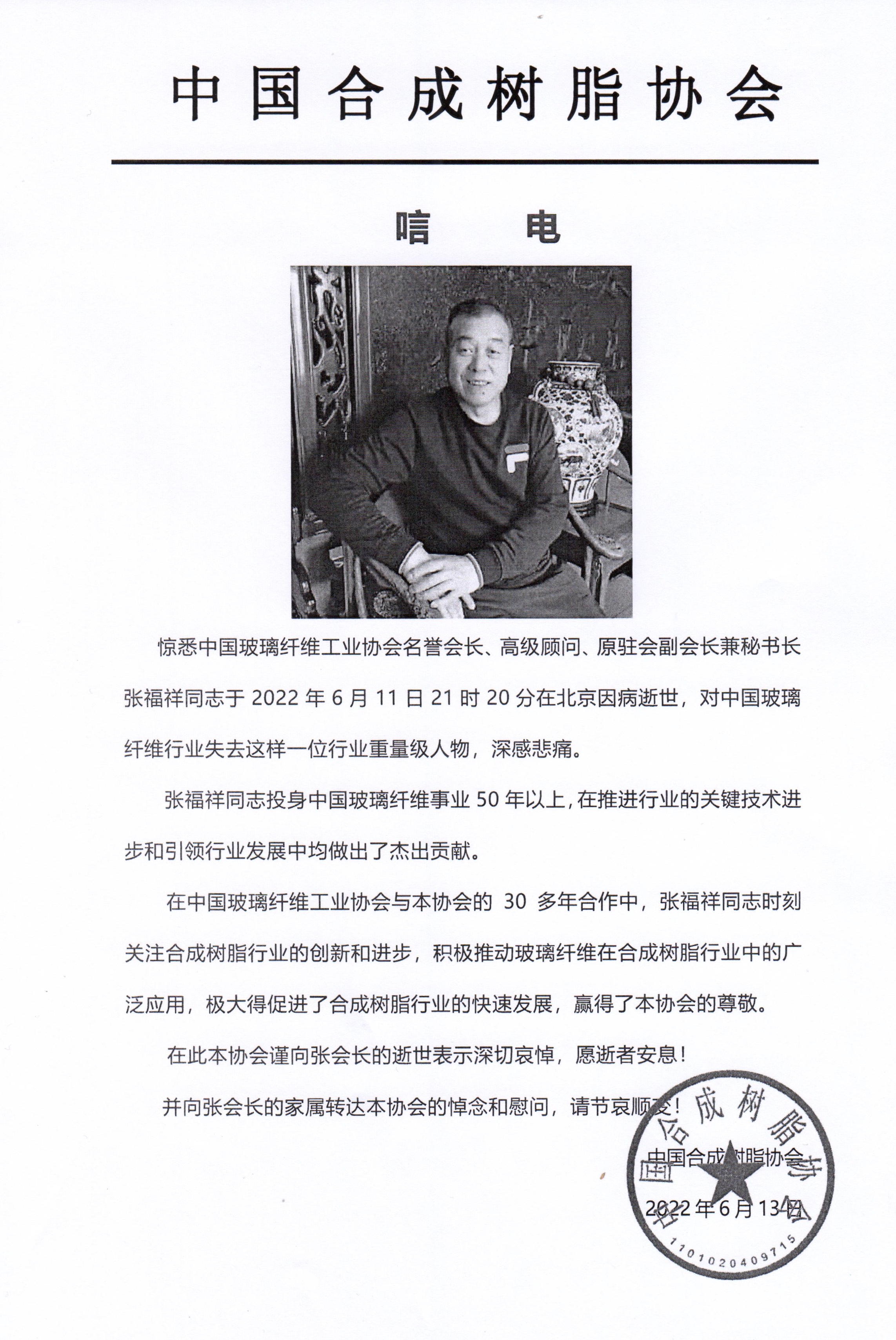 (協會發布)沉痛悼念中國玻璃纖維工業(yè)協會名譽會長張福祥同誌
