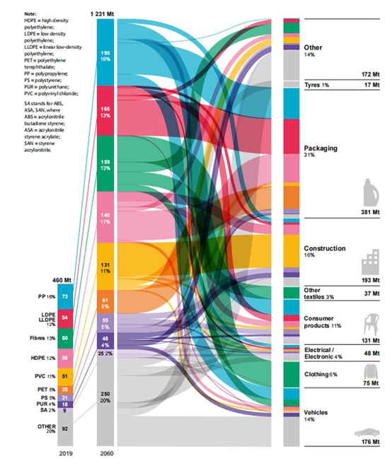 預計(jì)到2060年,所有塑料使用量顯著增加