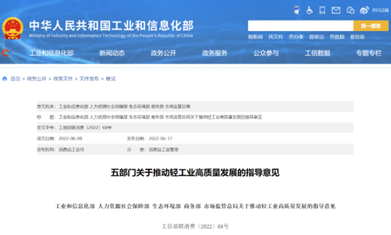 五(wǔ)部門關於推動輕工業高質量發展的指導意見