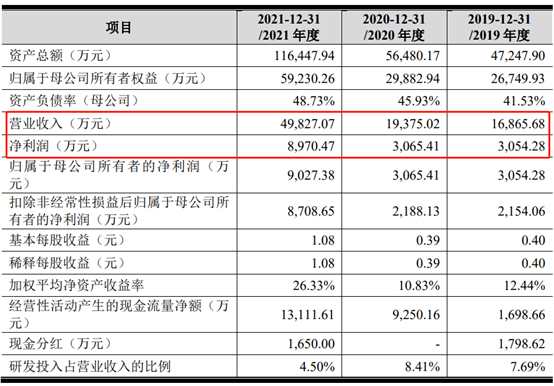 業績方(fāng)麵,惠通科技2019年、2020年、2021年營收分別為1.69億元、1.94億(yì)元、4.98億元;淨利分別為3054萬元、3065萬元、8970萬元;扣非後淨利分別為2154萬元、2188萬(wàn)元(yuán)、8709萬元。