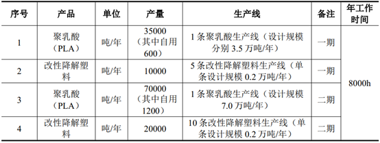 除了10.5萬噸(dūn)的聚乳酸產(chǎn)能(néng)外,兩期(qī)還規劃了3萬噸改性降解塑料(1萬噸+2萬噸)。由環評文件可知,項目中改性降解塑料產品(pǐn)為(wéi)熱塑性生物降解塑料PBAT和PLA共混纖維,可用於吹(chuī)膜、注塑、吸塑等加(jiā)工領域。