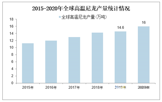 2015-2020年全球(qiú)高溫尼龍(lóng)產(chǎn)量統計情況