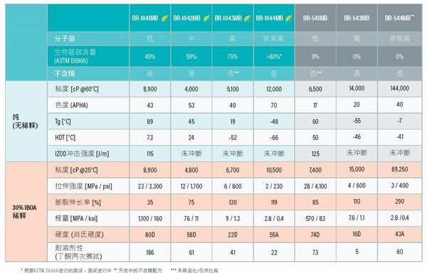 不同分子量的Bomar生物和石(shí)化基低聚物的參數對比(bǐ)