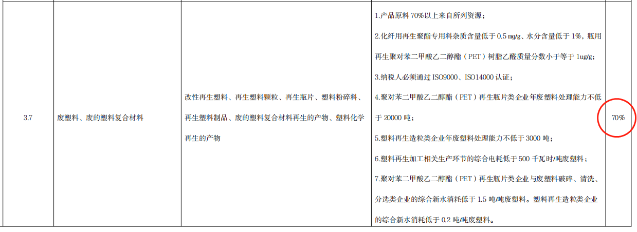 3.7 廢塑料、廢的塑(sù)料複合(hé)材料:退稅比例70%;