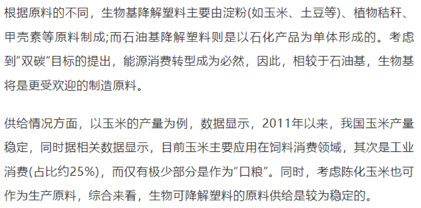 4、中國生物降解塑料行業上遊原料供給較為穩定