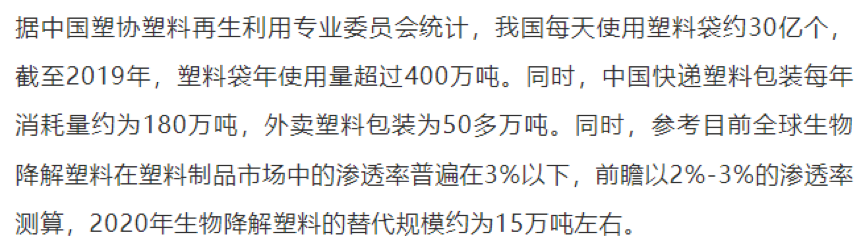 中國生物(wù)降解塑料市場滲透率較低(dī)、替代空(kōng)間大