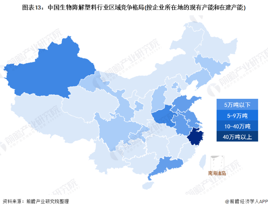 中國生物降解塑料區域競爭格局:區域產能分布較為分散(sàn)