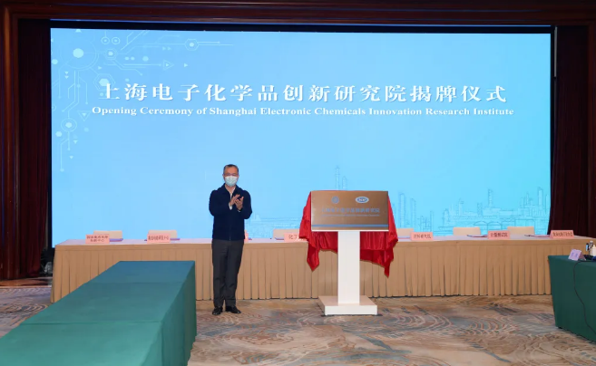 2021年12月15日,副市長張為出席上海電子化學品專區工作推進(jìn)會暨簽約揭牌儀式,為“上海電子化學品創新研究(jiū)院”揭牌。