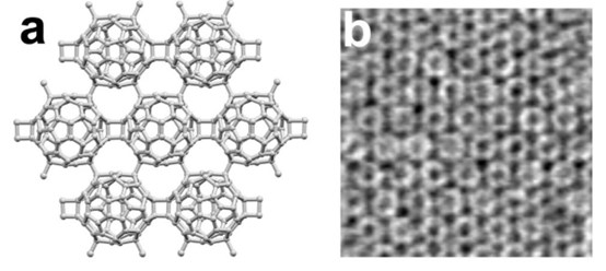 碳材料一直被認為是一種未來材料,製備新型碳材料一直是(shì)材料(liào)領域的前沿科學問題,以富勒(lè)烯、碳納米管(guǎn)、石墨烯、石墨炔為代表的新型碳材料的每一次(cì)發現都引發了材料學家的研(yán)究(jiū)熱潮。單層聚合C60是一種全新的簇聚(jù)二維超結構,由 C60簇籠在平麵上通過C-C鍵相互(hù)共(gòng)價鍵合形成規則的拓撲(pū)結構。這種新型碳材料具有較(jiào)高的結晶度和(hé)良(liáng)好的熱力學穩定性,並具(jù)有適度的禁帶寬度(dù),為碳材料的研究提供了全新(xīn)思路。