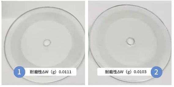 參照JC/T2327-2015標準基材:玻璃板,膜厚23±3µm ,25℃養護7d,采(cǎi)用CS-17號砂輪,負重(chóng)750g,研磨500轉,漆(qī)膜完整,未見破損。