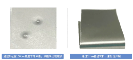 具有高硬度(2H鉛筆硬(yìng)度)的(de)同時,擁有良好的抗衝擊性能與柔韌性。